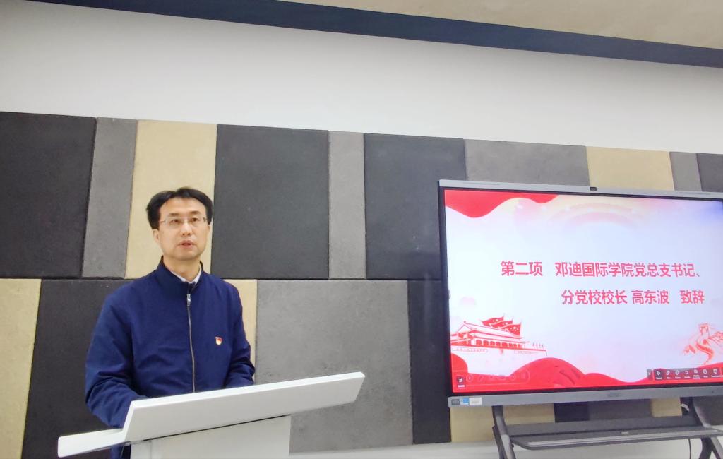高东波书记代表学院党总支、分党校致辞,对培训班的顺利开班表示热烈祝贺,对全体学员表示诚挚欢迎。他指出,在党的二十届三中全会胜利召开、国家迈上全面建设社会主义现代化新征程的重要时刻,举办本期发展对象培训班意义特殊。他强调,全体学员要珍惜此次系统学习党的创新理论的机会,筑牢信仰根基,把稳思想之舵,并对此提出三点希望:一要夯实理论功底,深入学习习近平新时代中国特色社会主义思想,不断提升政治判断力与思想定力;二要端正入党动机,锤炼党性修养,树立正确的世界观、人生观、价值观,自觉践行社会主义核心价值观;三要勇担时代使命,拓展国际视野,提升跨文化沟通能力,努力在国际舞台讲好中国故事,成为中外文明交流的桥梁。