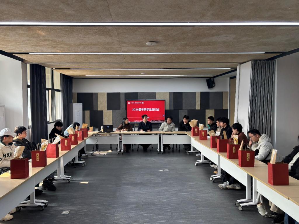 2025年12月10日下午,邓迪国际学院于网络楼622研讨室举行2026届考研学生代表座谈会。学院党总支书记高东波、学工办主任王晓宗出席本次会议,并与30余名考研学生代表进行深入交流。座谈会由辅导员范帆主持。