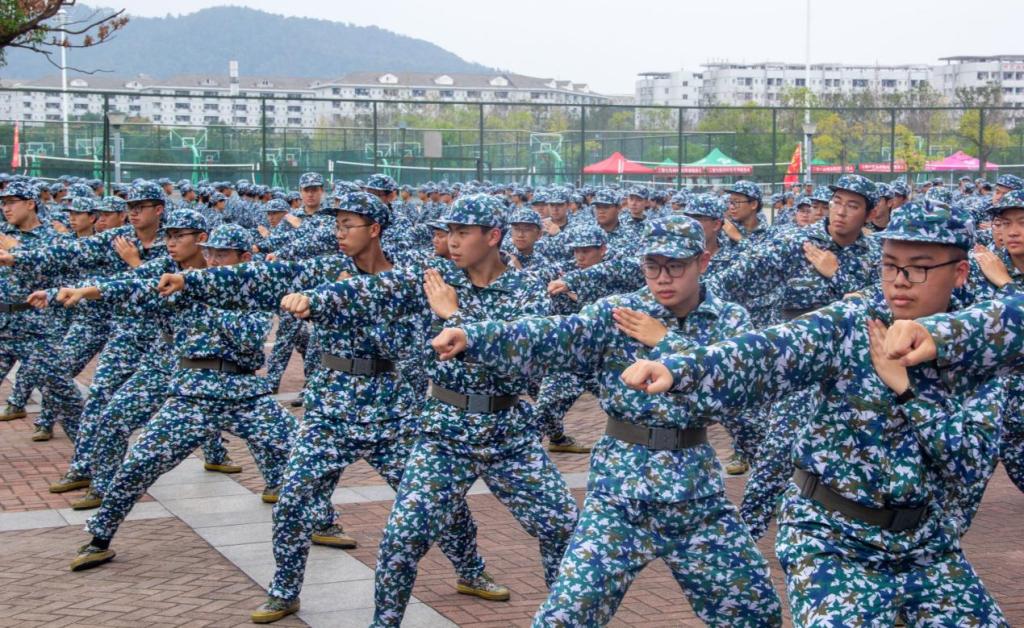 尽管天色灰蒙,同学们的训练热情却丝毫不减。各方阵训练有序展开:匕首操方阵已熟练掌握十一个分解动作,一招一式刚劲有力,一劈一刺气吞山河,仿佛有杀气从身上弥漫开来;分列式方阵精益求精,从摆手高度到步幅距离,乃至正步定腿的稳定性,每个细节都力求完美,争取在最后的会操中呈现出最饱满的精神面貌;仪仗队、军乐团等特殊方阵的同学们则需要面对更为繁多的任务,依然全力以赴。这些点滴细节,无不彰显着邓迪学子对军训的投入与对国防的热忱。