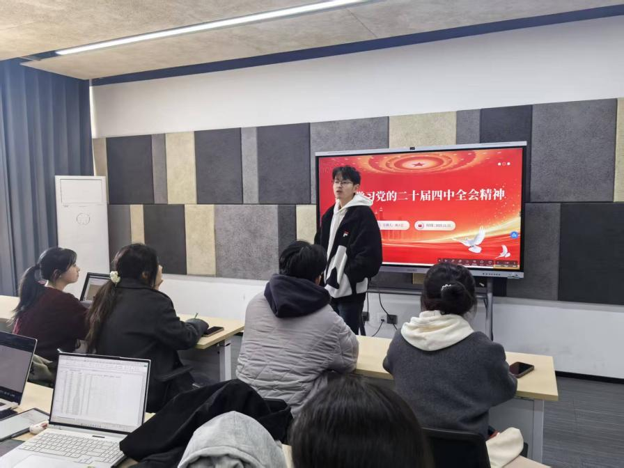 会议中,曹阳带领同学们一起学习党的二十届四中全会召开的背景及其重要意义,回顾“十四五”时期我国在经济、科技、民生等领域取得的辉煌成就。随后,周小艺组织同学们讨论分析“十五五”时期党和国家面临的世界形势,重点了解加快高水平科技自立自强、构建新发展格局的战略任务及举措。